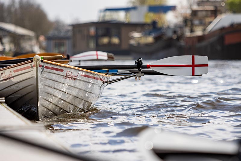 Naarmate je vordert, krijg je ook de kans om zelfstandig te roeien en leer je uitdagendere manoeuvres, zoals varen door bruggen en sluizen, ankeren en aankomen aan hogerwal.